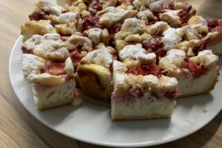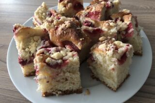 Drożdżowe z maszyny z truskawkami i kruszonką