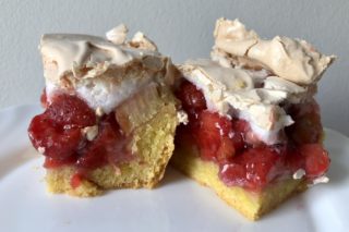 Kruche z rabarbarem, truskawkami i bezą