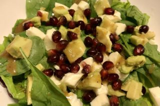 Sałatka z mozzarellą, awokado i granatem