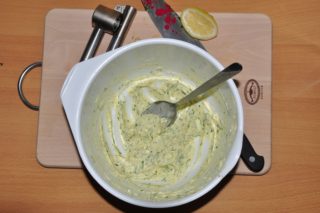Pieczone placki ziemniaczane z sosem chrzanowym