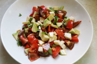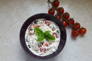 Twarożek z pomidorkami koktajlowymi i bazylią